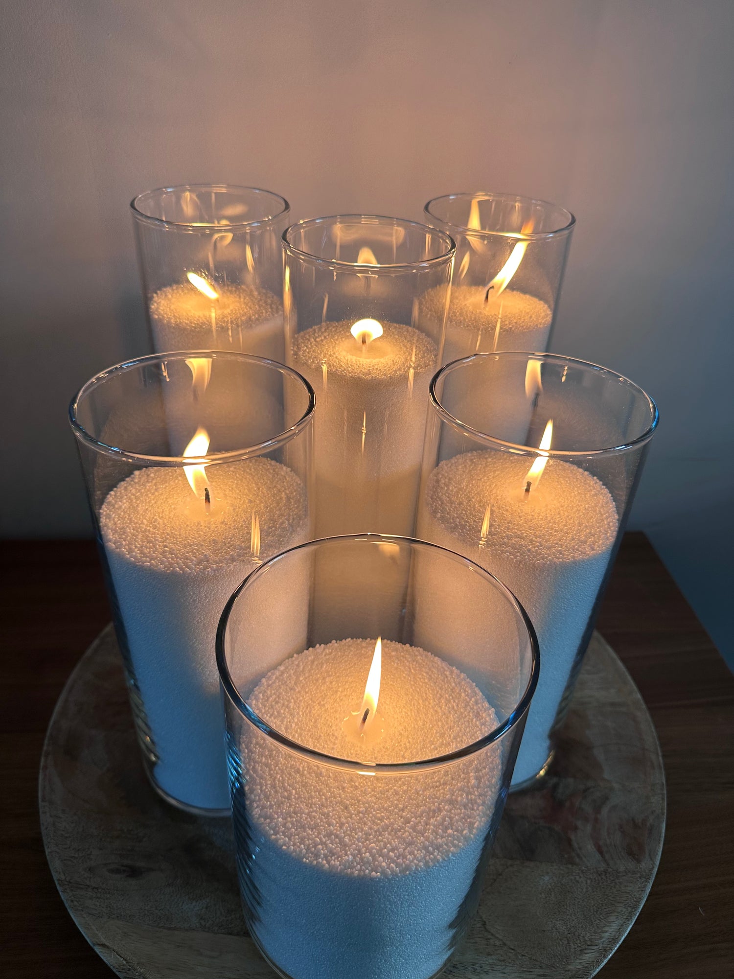 Plongez votre événement dans une lumière magique avec notre service de location de bougies Lalumí. Découvrez comment nos créations en cire perlée, soigneusement disposées dans des photophores en verre, peuvent sublimer chaque instant de votre mariage ou de tout autre événement spécial.